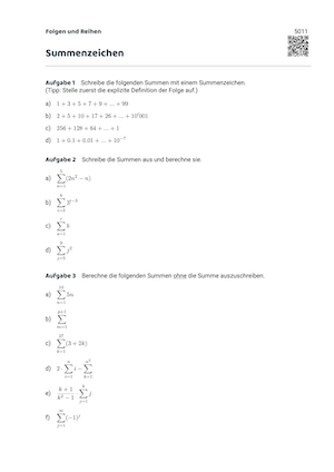 - Eigenschaft (5): \(\sum_{i=u}^{o} a_i = \sum_{i=1}^{o} a_i – \sum_{i=1}^{u-1} a_i\)