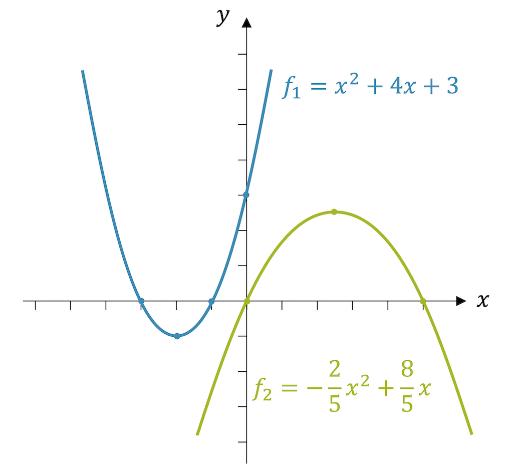 \[ f_2(x) = \;\underset{\uparrow}{\boldsymbol{-}}\; \frac{2}{5}\;x^2 + \frac{8}{5}x \]
