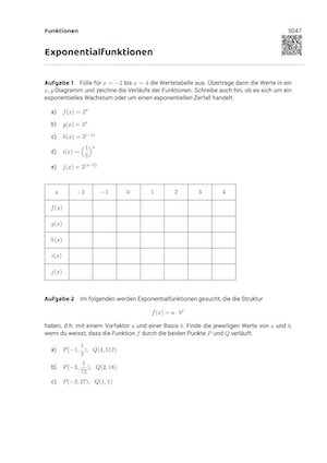 | Exponentialfunktion | 1 | 2 | 4 | 8 | 16 | 32 | 64 | 128 | 256 |