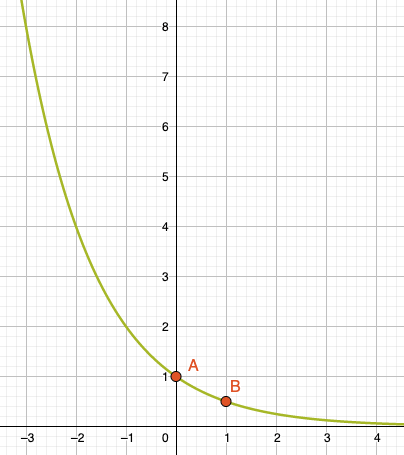 Ist die Basis \(a < 1\) (z.B. \(a=\frac{1}{2}\)), dann wird bei jedem Einerschritt der aktuelle Funktionswert mit \(\frac{1}{2}\) multipliziert bzw. halbiert.