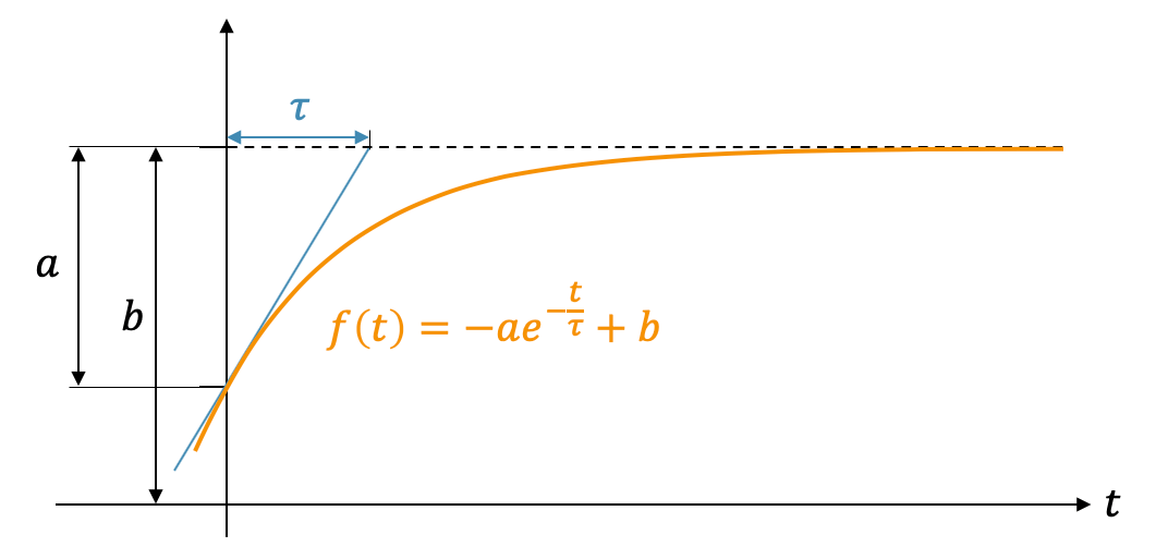 \[ f(t) = b – a \cdot e^{-\frac{t}{\tau}} \]