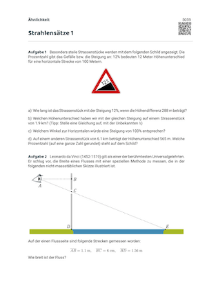 Berechne mit Hilfe des Ersten Strahlensatzes die Höhe des Baums. Funktioniert diese Berechnungsmethode auch, wenn der Baum an einem geraden Hang steht (Schatten am auf- bzw. absteigenden Hang)? Wie begründest du deine Antwort?