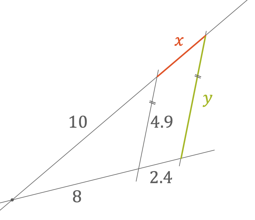 Berechne die Längen \(x\) und \(y\) im folgenden Beispiel