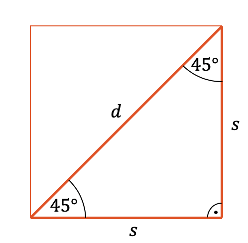 \[d^2 = 2s^2 \quad \rightarrow \quad d = \sqrt{2} s \]