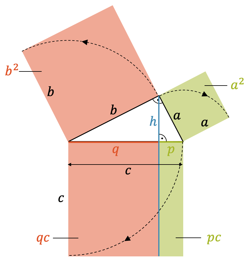 \[b^2 = c^2 – pc = c \cdot (c – p) = c \cdot q = qc \]