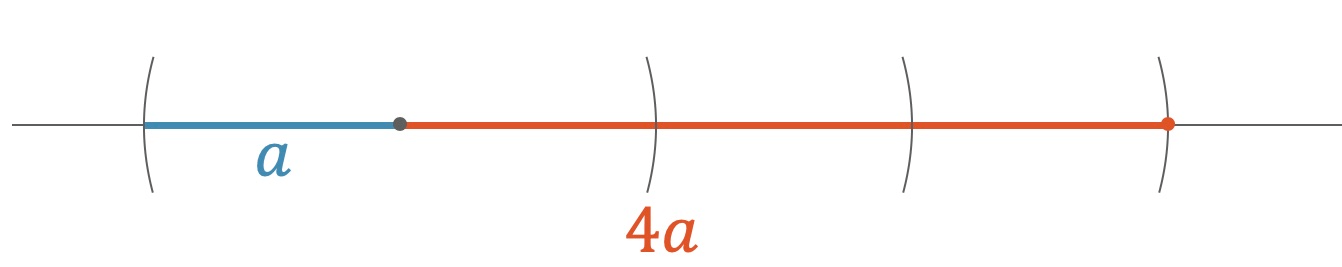 Eine gegebene Strecke kann konstruktiv \(n\)-fach verlängert werden, indem die Strecke mit dem Zirkel auf der Verlängerung \(n\)-mal abgetragen wird.