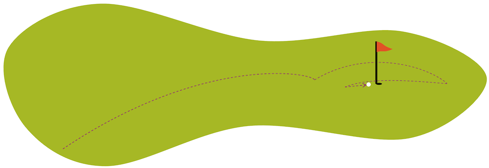 Der Trick ist ein iteratives Näherungsverfahren. Das kannst du dir ein bisschen wie Golf vorstellen: Zuerst schlägst du auf den Ball, damit dieser möglichst weit kommt. Die Richtung muss stimmen, aber sonst ist die Sache noch nicht sehr genau. Sobald du schon ein bisschen näher dran bist, schlägst du weniger stark und etwas gezielter, bis du nur noch wenige Meter vom Loch entfernt bist. Am Schluss reicht ein sanfter und sehr genauer Stoss und der Ball ist versenkt.
