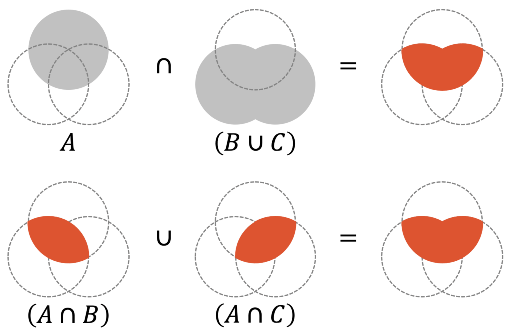 \[ A \cap (B \cup C) \;\;=\;\; (A \cap B)\;\cup\;(A \cap C) \]