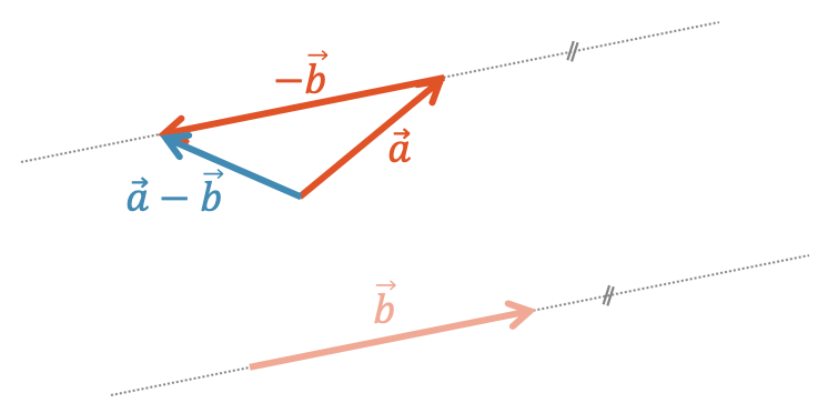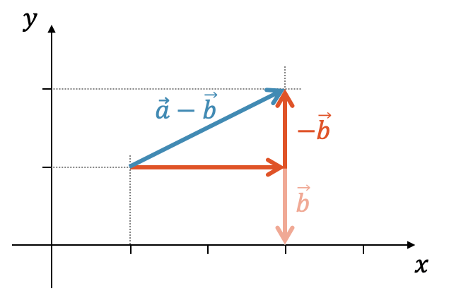 \[ \vec{a} – \vec{b} \quad = \quad \vec{a} + (-\vec{b}) \]