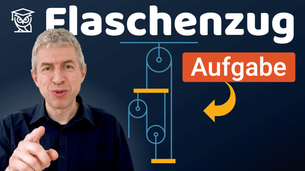 In diesem Video besprechen wir eine etwas anspruchsvollere Aufgabe mit einem Flaschenzug. Wir berechnen die Zugkraft, die es braucht und schauen uns am Schluss auch das Drehmomentgleichgewicht an. In Summe eine etwas längere Geschichte, aber wenn Du das verstanden hast, dann wirst Du bei allen anderen Flaschenzugaufgaben nur noch müde lächeln! 😉