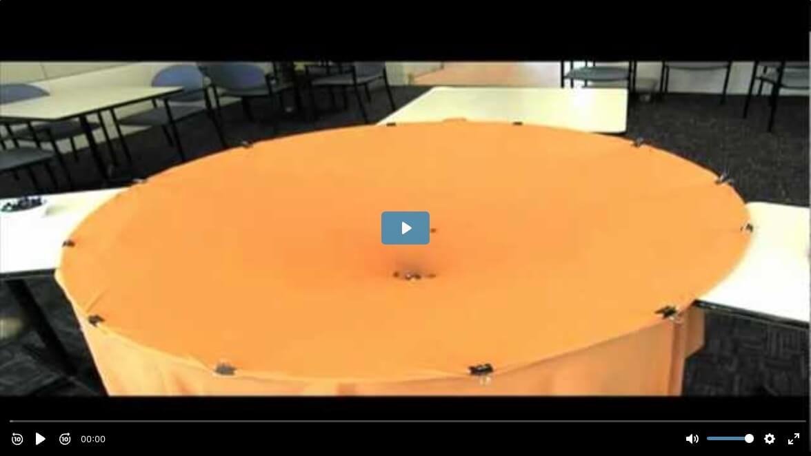 Das Trägheitsmoment für einen Massepunkt der Masse \(m\), mit Abstand \(r\) zum “Drehzentrum”, entnehmen wir aus einer Tabelle. Es gilt: