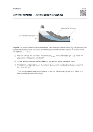 Damit erhalten wir einen Ausdruck für den Schweredruck \(p\), der durch eine Wassersäule der Höhe \(h\) über dem betrachteten Punkt erzeugt wird: