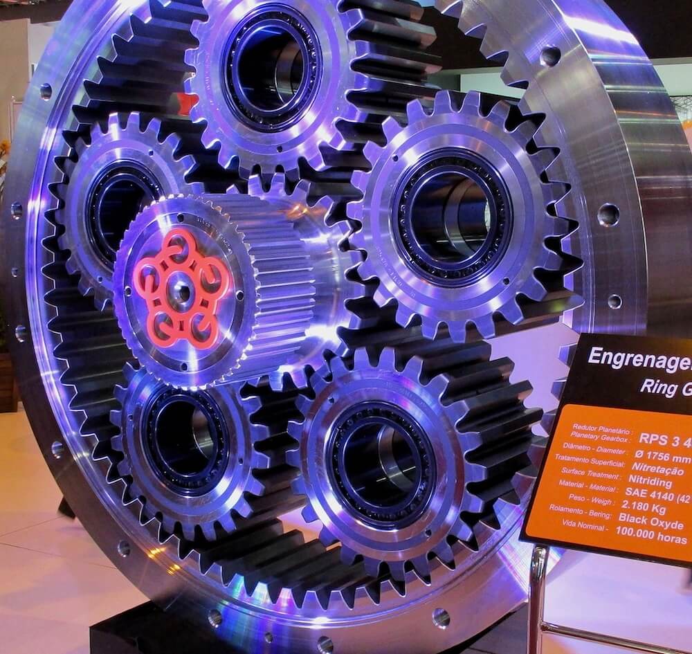 Eine Besonderheit ist das schöne Planetengetriebe, das z.B. in Windturbinen eingesetzt wird. Dieses Getriebe wandelt die sehr langsame Drehbewegung des Rotor in eine viel schnellere Drehbewegung um.