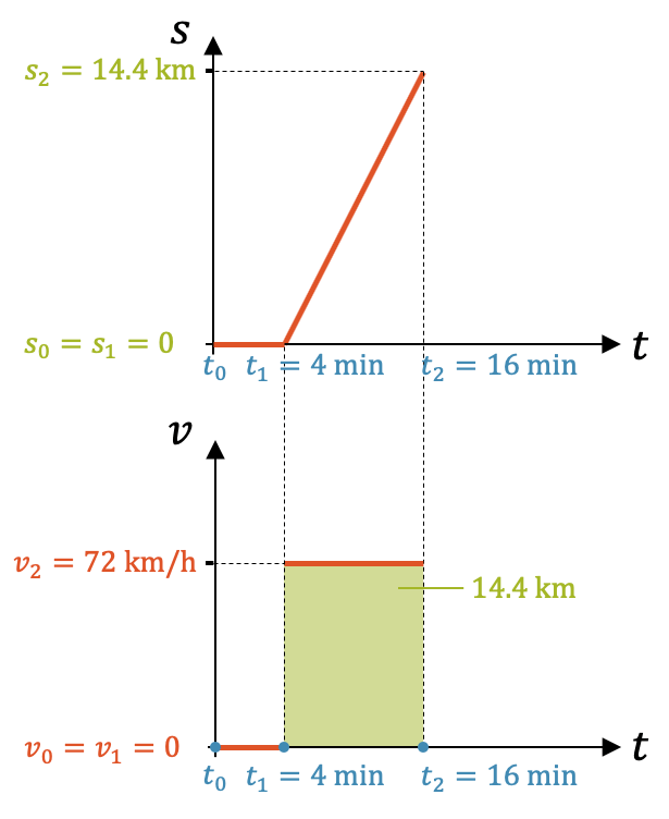 \[ \Delta t \cdot \Delta v \quad = \quad (16 – 4)\;\text{min} \cdot (72 – 0)\;\text{km/h} \quad = \quad 12\;\text{min} \cdot 72\;\frac{\text{km}}{\text{h}} \]