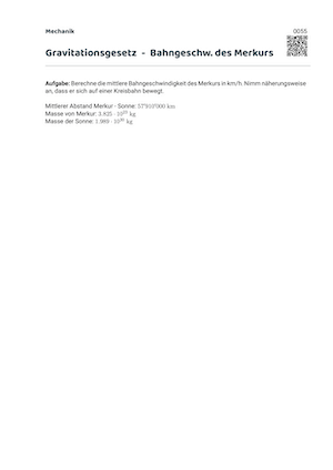Newton hat zusätzlich noch die Masse der Sonne \(m_S\) sowohl im Zähler, wie im Nenner eingeführt. Der Ausdruck in der Klammer ist konstant und damit eine universelle Grösse – das beweisen wir an dieser Stelle nicht – sie wird deshalb einfach mit \(G\) abgekürzt, was uns die Gravitationskonstante gibt.