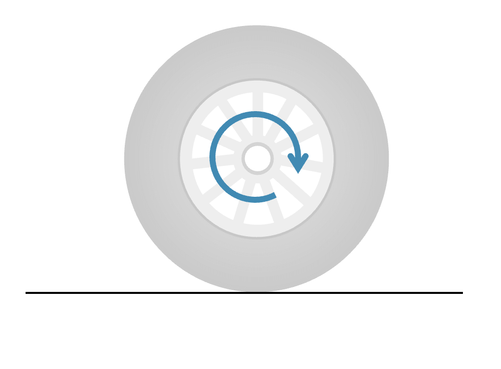 Beachte: Gemäss Newtons Drittem Gesetz wirkt das Rad mit der gleich grossen, aber gerade entgegengesetzten Kraft auf den Boden, d.h. der Boden erfährt eine Kraft nach hinten.