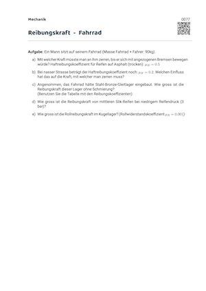 Der Haftreibungskoeffizient kann für verschiedene Oberflächenpaare in Tabellen nachgeschaut werden. Er bewegt sich im Bereich von ca. \(0.042 < \mu_H < 1 \)