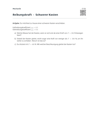 Falls die Obergrenze aber überschritten wird, kann keine so grosse Haftreibungskraft aufgebracht werden. Es entsteht dann meistens Gleitreibung, d.h. wir müssen die Berechnung wieder von vorne beginnen – dieses Mal für die Gleitreibung.