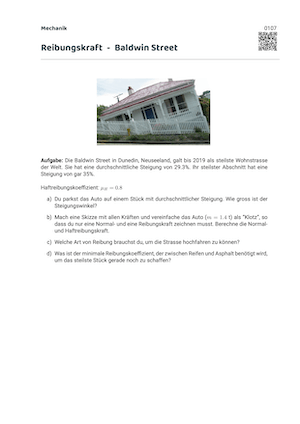 Wir können dieses theoretisch anmutende Beispiel direkt mit dem Abstellen eines Autos an einer steilen Strasse vergleichen: Die Haftreibung zwischen den Reifen und dem Boden verhindert, dass das Auto wegrutscht.