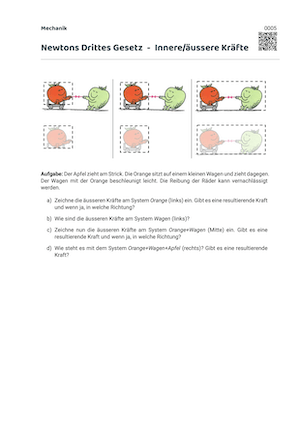 Newtons Drittes Gesetz wird oft auch Wechselwirkungsgesetz genannt. Das darunter liegende Prinzip besagt, dass zwei Körper mit einer Kraft aufeinander wirken können. Jedoch werden beide Körper je eine Kraft auf den anderen Körper bewirken. Es gibt keine Einbahnstrassen. Wir können z.B. nicht berühren, ohne selber berührt zu werden.