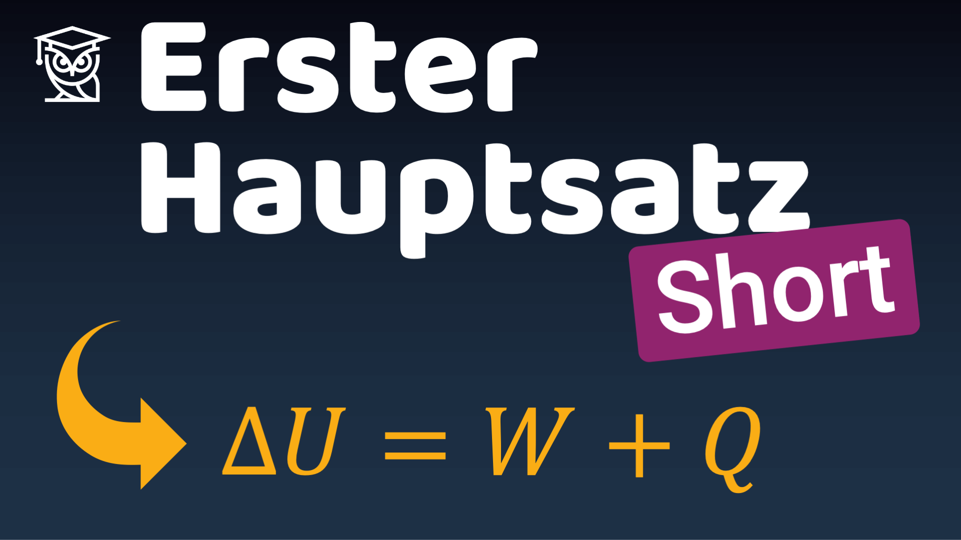 Der Erste Hauptsatz der Thermodynamik (Wärmelehre) besagt: Die Zunahme der inneren Energie \(\Delta U\) eines Systems ist wegen der Energieerhaltung gleich der Summe von netto zugeführter Arbeit \(W\) und netto zugeführter Wärme \(Q\):
