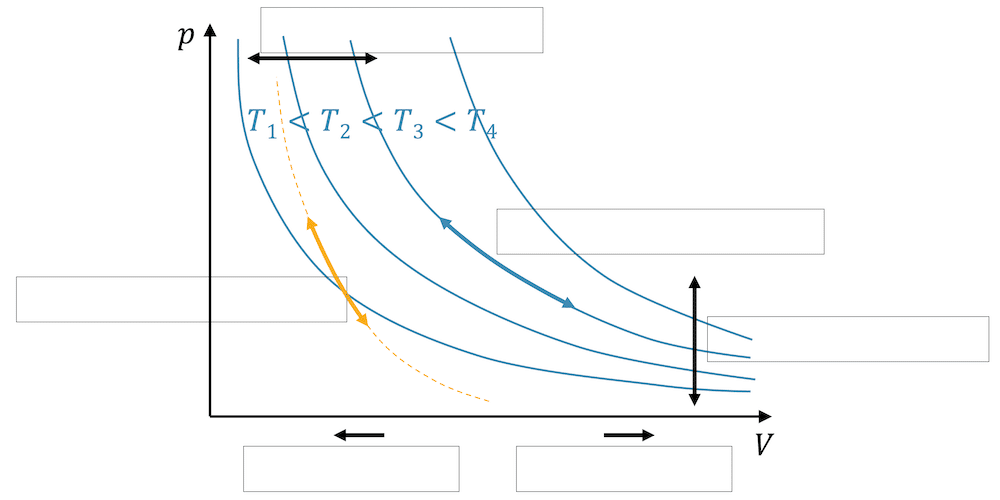 - isotherme Kompression oder Expansion (konstante Temperatur)