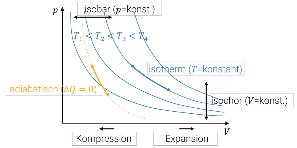 Zustandsänderungen im p-V-Diagramm