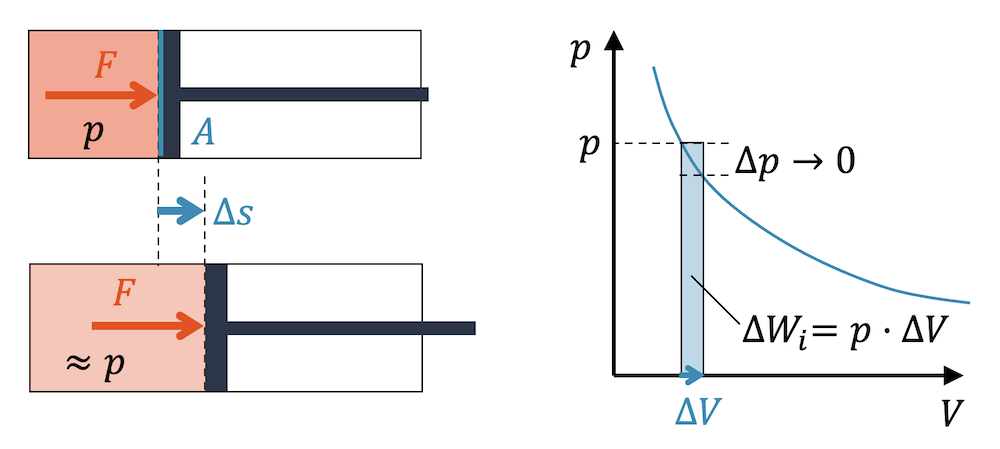 Im p-V-Diagramm ist \(p \cdot \Delta V\) eine Rechteckfläche mit Breite \(\Delta V\) und Höhe \(p\).
